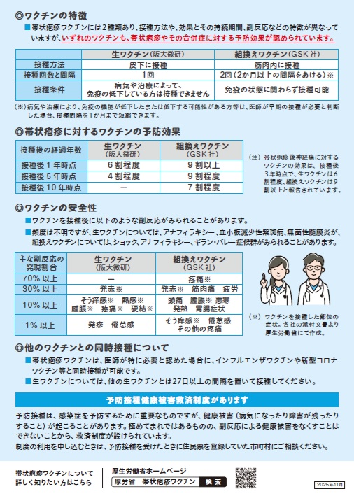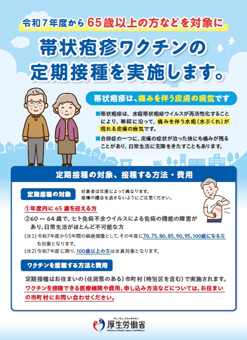 高齢者の帯状疱疹予防接種費用助成が開始されます。