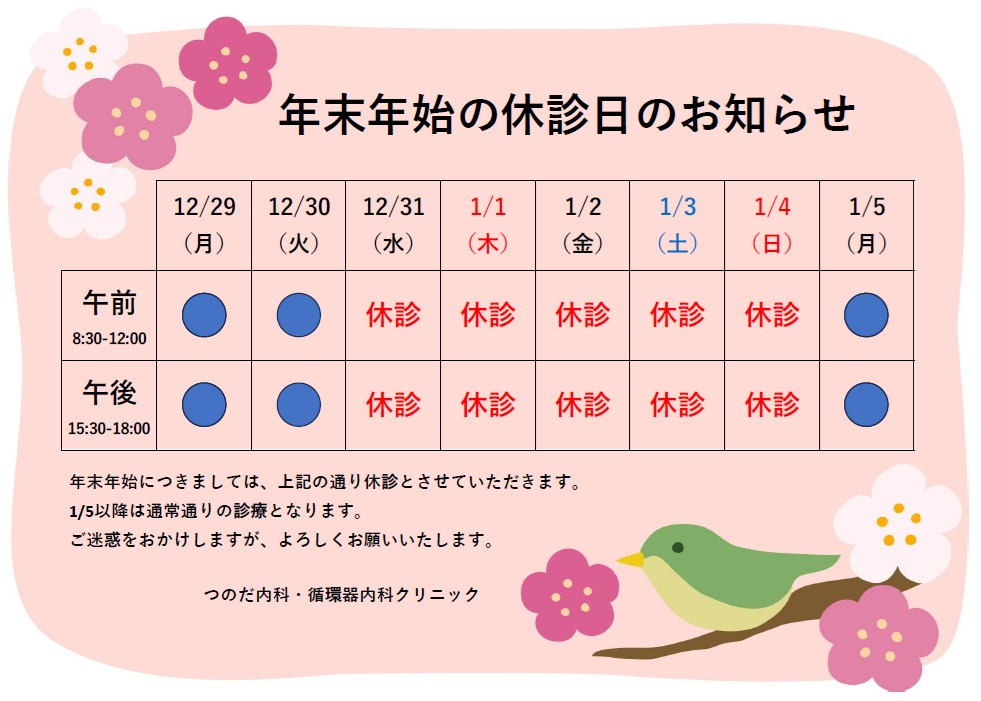 12月31日から1月4日まで休診とさせていただきます